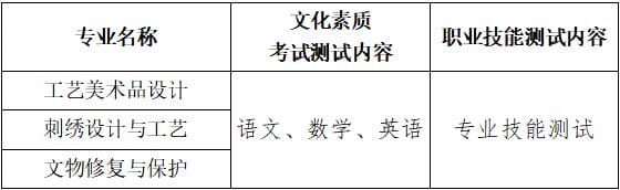 第十四条 单独招生考试采取“文化素质+职业技能测试”的模式,考试时间为4月1日(其中文化素质测试时间为上午9:00-12:00,职业技能测试时间为2:00-3:30)。各专业考试方式具体见下表。